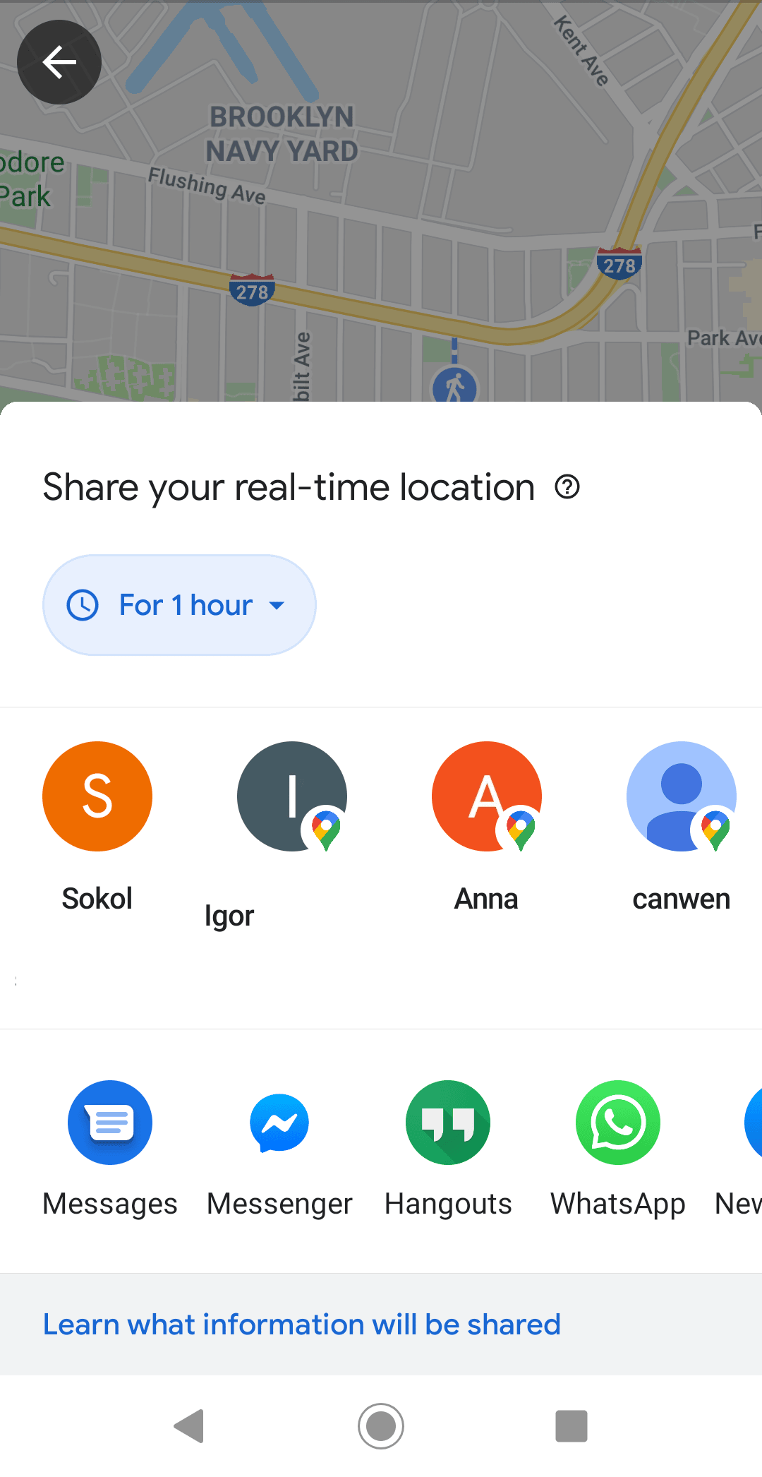 - Choose how long you want to grant access to your real-time location.