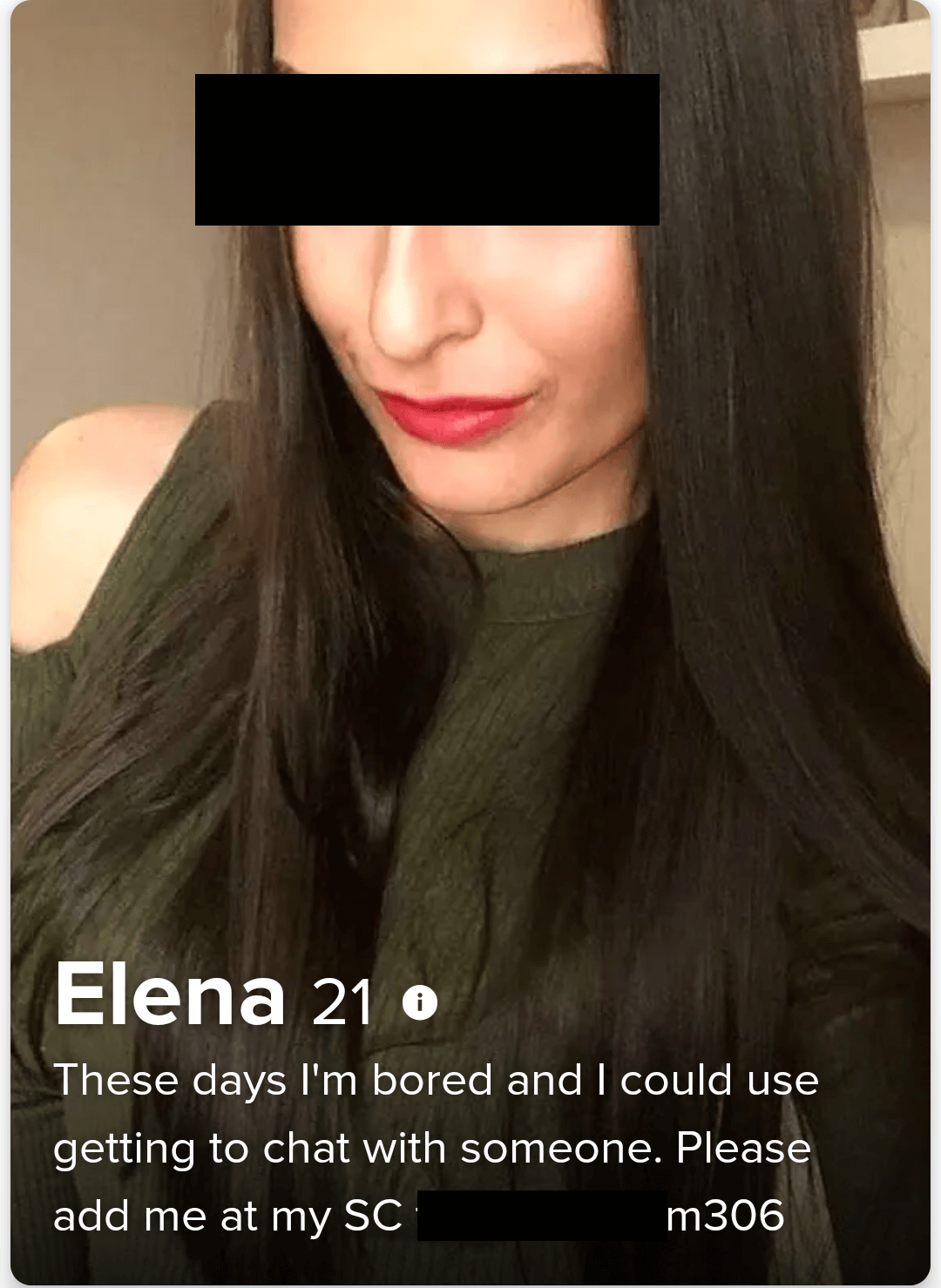 Major dating apps are usually extremely vigilant and promptly block profiles like these.