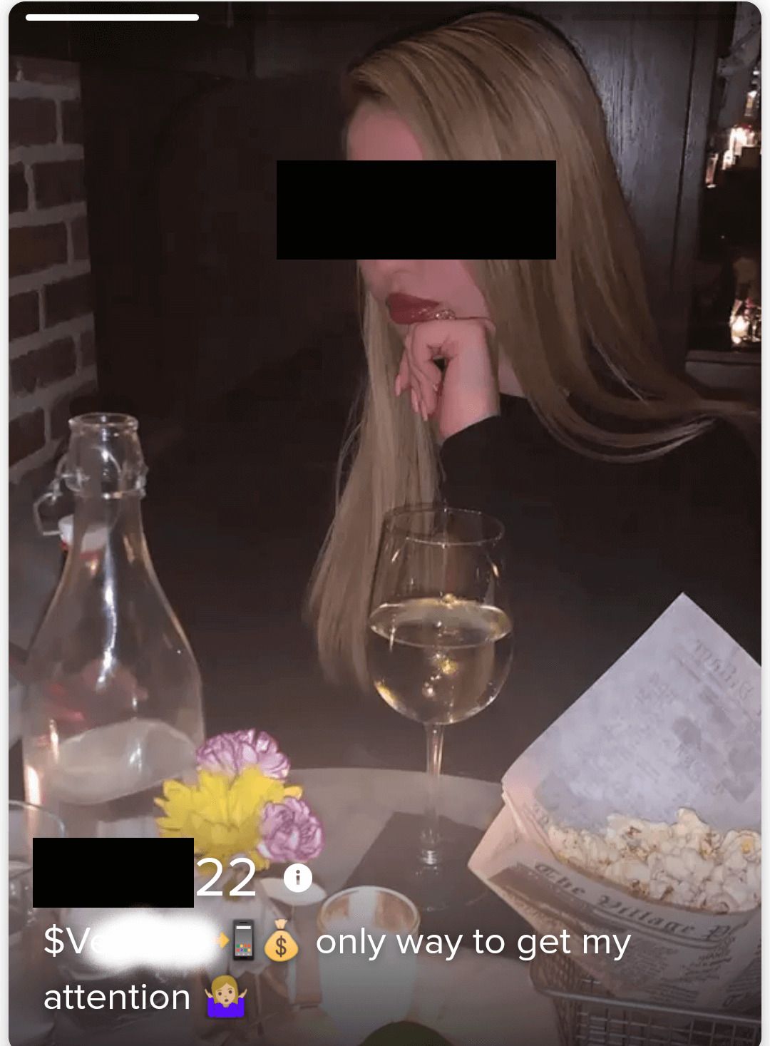 Let's warm up with this fairly innocuous case. Instagram followers are a currency: "influencers" with sizable audiences can "collab" with brands to promote products in exchange for a fee or commission. Dating apps that allow displaying one's IG handle in the open are an opportunity for "models" to promote themselves: are they even single? Maybe. But dating isn't what they're here for.
